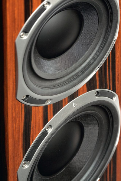 Monitor Audio preferuje małe średniotonowe, Triangle – duże, najczęściej takiej samej średnicy jak niskotonowe, co dotyczy Cello (i też trójdrożnego Quatuora). Niskotonowe i średniotonowy to 18-tki, nawet trochę większe (biorąc pod uwagę średnicę koszy).