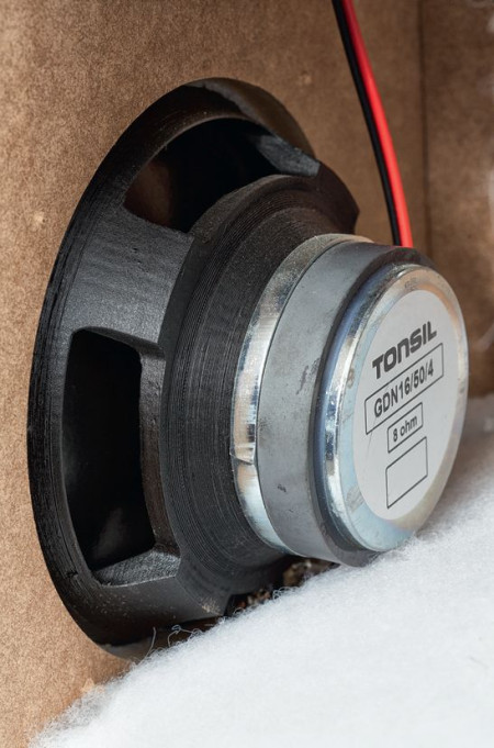 Powyżej ok. 100 Hz do gry wchodzi drugi, ulokowany już na froncie głośnik Tonsilu – GDN 16/50/4. To specjalny typ produkowany przez Tonsil tylko na własne potrzeby, który jest na różne sposoby zastępowany przez hobbystów.