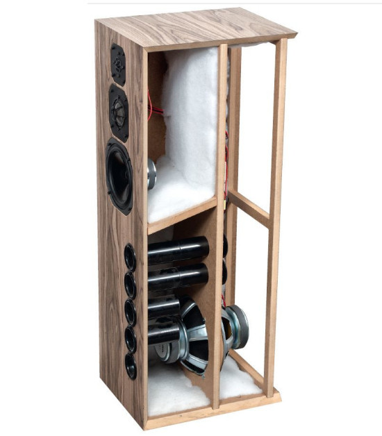 Dwa górne tunele należą do komory strojonej niżej (do około 30 Hz), która w związku z tym jest większa, zajmując tylną część całej kolumny. Dłuższe tunele też pomagają niższemu strojeniu, "przebijają się" do tylnej komory przez mniejszą, przednią komorę, strojoną wyżej (do ok. 70 Hz).