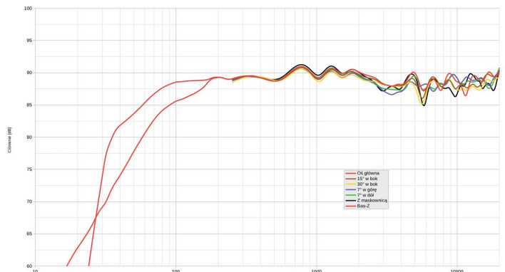 Jest też wolna od rezonansów pasożytniczych, zwłaszcza od transmitowania fal stojących obudowy. Mała szpilka pojawia się dopiero przy 950 Hz – to rezonans samego tunelu.