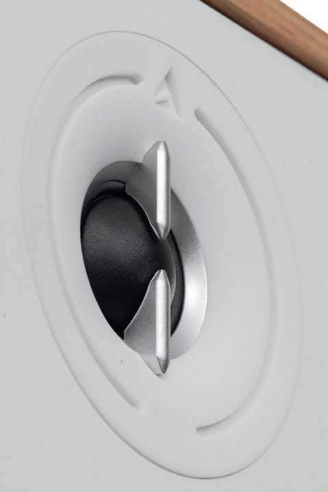 Układ napędowy opiera się na magnesie neodymowym, dzięki czemu zewnętrzne wymiary są umiarkowane, a to pozwala zbliżyć centra akustyczne wysokotonowego i średniotonowego, co zawsze warto robić w miarę możliwości.