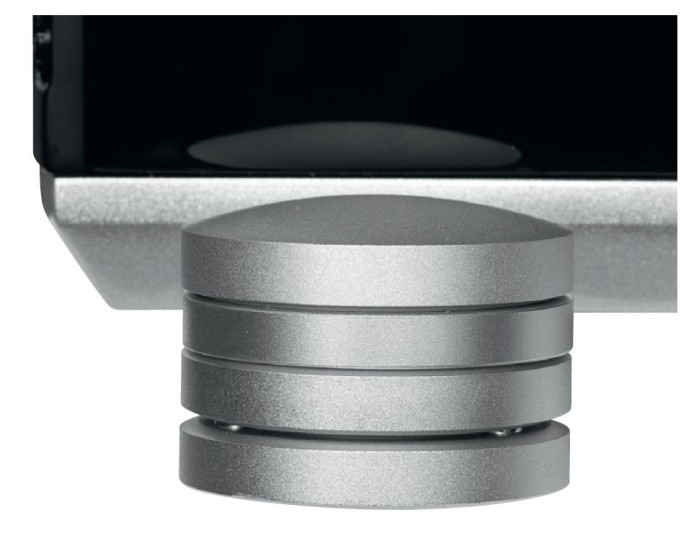 Konstrukcja jest wysoka i szczupła, więc wymaga szerzej rozstawionych punktów podparcia. Zapewniają to dwie grube metalowe listwy, do których instalujemy nóżki. Nie są to kolce, choćby najmasywniejsze, ale okrągłe, płaskie stopy, które nie porysują nam parkietu, a mimo to zapewnią bardzo dobrą stabilność i izolację wibracji.