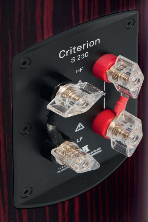 Dwa modele serii Criterion, T+A Criterion S 230 i T+A S 240, są do sobie podobne, mają takie same konfiguracje głośnikowe, tyle że mniejszy (testowany) S 230 ma mniejsze głośniki niskotonowe i średniotonowe. Nic nie wiedząc o stosowaniu przez T+A linii transmisyjnej, niekoniecznie musielibyśmy się domyślić jej obecności, widząc tylko na dole frontu duży poprzeczny otwór. Moglibyśmy podejrzewać, że należy do systemu bas-refleks…