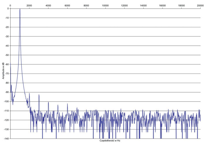 Charakterystyka płynnie, bez mocniejszych lokalnych zakłóceń, tworzy "dolinę" w zakresie średnio-wysokotonowym, dając przewagę niskim rejestrom. Wznosi się też delikatnie w zakresie najwyższych częstotliwości, ale przy 5 kHz, a więc już w zakresie wysokich tonów, notujemy najniższy poziom w całym pasmie.