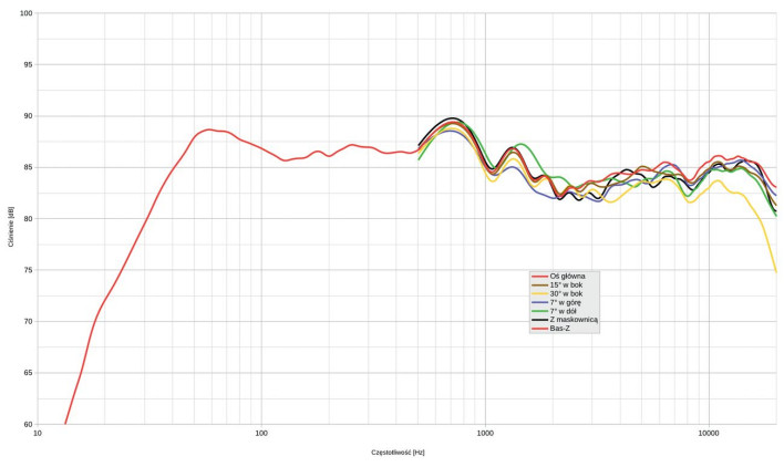 Również charakterystyka z maskownicą (zmierzona dodatkowo na osi głównej) nie odstaje wyraźnie od pozostałych, można ją więc bez większych zmian w brzmieniu pozostawić założoną. W sprawie impedancji producent wypowiada się skrótowo (bez podania minimum), ale poprawnie i rzeczowo, deklarując jednoznacznie wartość impedancji nominalnej – 6 Ω.