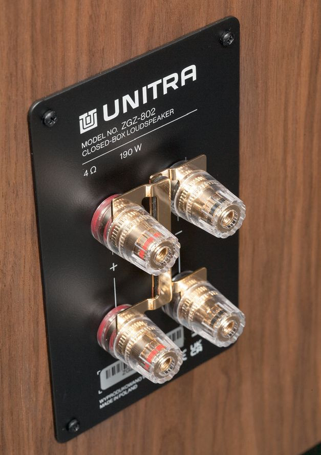 System zamknięty to ważny punkt programu zarówno ZGZ-801, jak i ZGZ-802. Konstruktorzy Unitry nie są jednak do niego definitywnie przywiązani; mały, podstawkowy model ZGB-401 ma system bas-refleks. Podoba mi się taka elastyczność (której brakuje innym firmom, trzymającym się jednego rozwiązania w tej dziedzinie), a zarazem podejście jest trochę niekonwencjonalne.
