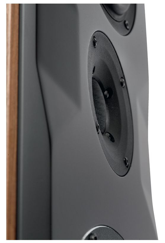 Dodatkowo wykonano efektowne i akustycznie pożyteczne ścięcia wokół głośnika wysokotonowego. Ponadto front został pogrubiony do 25 mm – to jednak wydaje się być standardem dla kolumn tej wielkości i tej klasy.