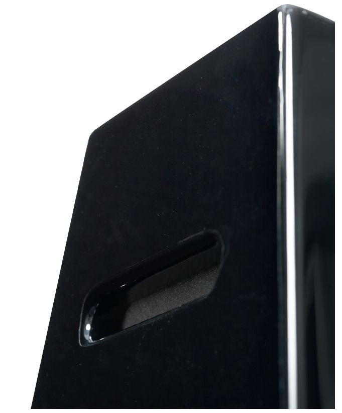 Wielopłaszczyznowość bryły wynika głównie z takich celów akustycznych, a przy okazji może służyć redukowaniu fal stojących w obudowie. Dodano jeszcze pochylenie górnego fragmentu tylnej ścianki (najprawdopodobniej w części zajmowanej przez komorę średniotonowego), delikatnie pochylono też niewielką górną ściankę (unosi się ku tyłowi) i delikatnie ścięto jej boczne krawędzie; front poniżej niskotonowego ma mniejsze pochylenie, ale też nie jest pionowy.