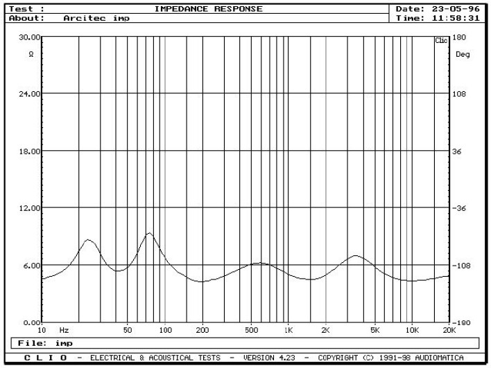 Duża Athena jest konstrukcją, którą rygorystycznie traktując należałoby uznać za znamionowo 4-omową, ale trzeba też stwierdzić, że bardziej przypomina wiele konstrukcji 6-omowych, niż 4-omowych, i jest w sumie dość wygodnym obciążeniem dla wzmacniacza. Otóż minima w całym pasmie leżą na poziomie 4 4,5Ω, a zmienność modułu jest bardzo niewielka, również w zakresie niskich częstotliwości (rys.1).