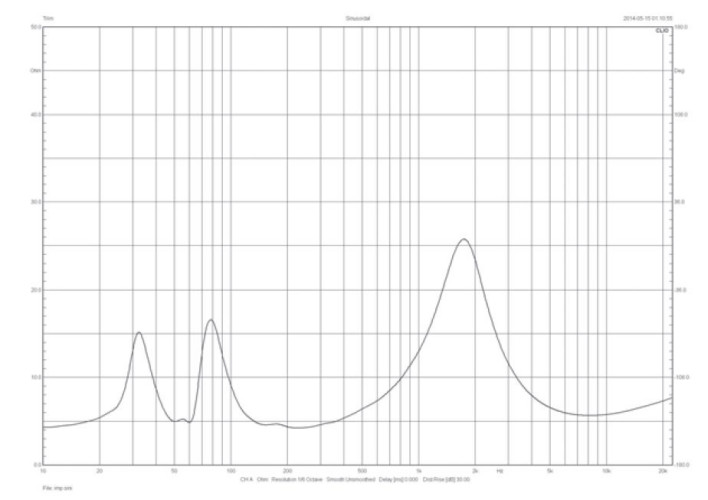 Minimum przy ok. 220 Hz ma wartość dokładnie 4 omy i w całym pasmie nie spadnie poniżej tej wartości. Chociaż to znamionowo kolumny 4-omowe, to jedne z "łatwiejszych" w tej kategorii.