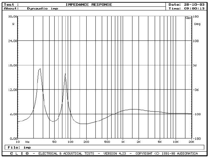 Już po charakterystyce impedancji (rys. 1) możemy poznać Dynaudio. Jest pięknie zlinearyzowana w zakresie średnio-wysokotonowym, i cecha ta spodoba się każdemu wzmacniaczowi, chociaż w okolicach 150-200Hz czai się minimum na poziomie ok. 3,5Ω, więc ostatecznie Audience 53SE ciastkiem z kremem nie jest. Ale nie jest też cięższym obciążeniem niż podobnie jak on, znamionowo 4-omowe konstrukcje Avance’a i Dali.