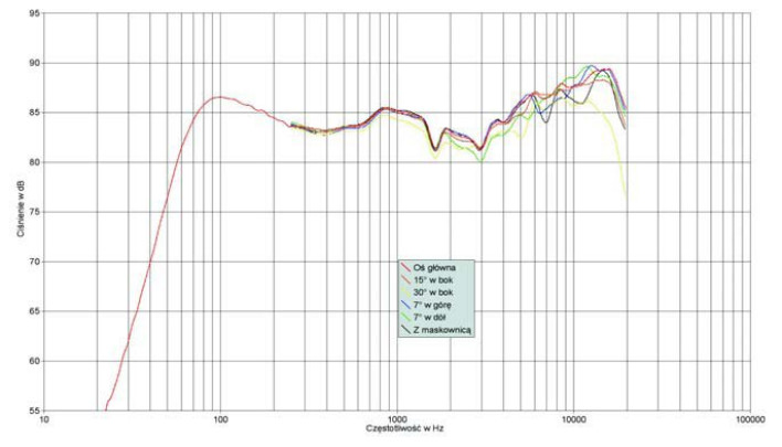 Charakterystyka przetwarzania jest szeroko rozciągnięta i eksponuje wysokie częstotliwości - nawet na osiach innych niż oś główna, włącznie z kątem 30° w płaszczyźnie poziomej, widać wzrost ciśnienia począwszy od 3kHz, aż do 15kHz. Inaczej mówiąc, jak byśmy nie usiedli i jak nie ustawili Q1020, wysokich tonów nie zabraknie. Nie musi to oznaczać agresywnego brzmienia, bo zakres 2-4kHz jest lekko cofnięty.