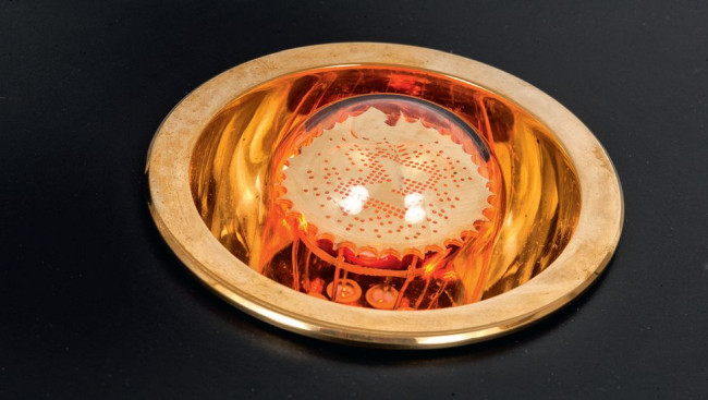 Z centrum frontu wyłania się podświetlane (od wewnątrz) logo Mytek, któremu towarzyszy firmowe oznaczenie na górnej płycie. Z tyłu intryguje lampa w ozdobnym, złotym pierścieniu. Nie przypomina ona żadnego ze znanych elementów… Co to jest, a przede wszystkim jaką pełni rolę? Wyłącznie dekoracyjną, "ocieplając" techniczny wizerunek wzmacniacza w klasie D. Zarówno jej podświetlenie, jak i logo na froncie można wyłączyć.