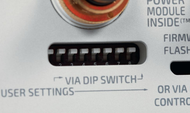 Empire jest końcówką mocy, a nie wzmacniaczem zintegrowanym, wobec czego niska czułość nie będzie zaskoczeniem; wartość 2,6 V powinna być odpowiednia dla większości źródeł, ale jeżeli nie wystarczy to, aby w pełni wysterować Empire (przy podłączeniu niektórych odtwarzaczy i DAC-ów, których regulacją głośności kończy się na 2 V), wówczas możemy wybrać tryb większego (o 6 dB) wzmocnienia (jednym z mikroprzełączników na tylnej ściance).