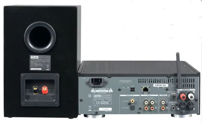 Na stałe zainstalowano antenę dla sieciowego modułu Wi-Fi, który uzupełniono przewodowym połączeniem LAN. Teac oferuje jedną pętlę analogową (wejścia i wyjścia RCA) i wejście dla gramofonu analogowego (dla wkładek MM), z uwzględnieniem zacisku uziemiającego.