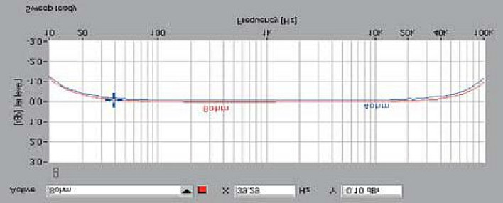 Pasmo przenoszenia (rys.1) swobodnie pokrywa zakres od 10 do 100 kHz, spadki na granicach wynoszą tylko ok. -1 dB. Widmo zniekształceń przedstawione na rys. 2. jest w przeważającej większości zakresu czyste, jedynie poziom trzeciej harmonicznej osiągnął wyższe, lecz wciąż akceptowalne -82 dB.