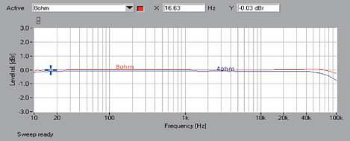 Natomiast nie można mieć najmniejszych zastrzeżeń do charakterystyk z rys. 1., charakterystyka przenoszenia sięga liniowo 10 Hz, a przy 100 kHz spadek nie przekracza 1 dB.
