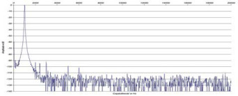 Choć urządzenie generuje kilka harmonicznych niższych rzędów, to finalna charakterystyka (rys. 2) w znacznej mierze opiera się ich wpływom. Najsilniejsza trzecia leży przy -91 dB, druga 2 dB niżej. Kolejne harmoniczne widać już ilościach śladowych, poniżej -100 dB.
