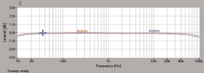 Swoją drogą to sprawnie funkcjonujący układ, szkoda tylko, że skalibrowany zdecydowanie tak ostrożnie, bowiem zniekształceniom THD+N daleko wtedy do wartości 1%. Zasilacz przy 8 omach nie jest przesadnie obciążony, o czym świadczy wynik 2 x 90 W przy 8 omach, natomiast przy 4 omach nie zdąży nawet napiąć muskułów, bo przewrażliwione zabezpieczenie wtrąca się już przy 2 x 92 W. Poziom szumów KI Pearl Lite jest jednym z najniższych, jakie kiedykolwiek odnotowałem w kategorii wzmacniaczy zintegrowanych, wskaźnik S/N wynosi 94 dB, a dynamika - mimo nieoszałamiającej przecież mocy - poszybowała w rejon 114 dB. Układy regulacji barwy w tym nie przeszkadzają, o ile są "odcięte" systemem direct.