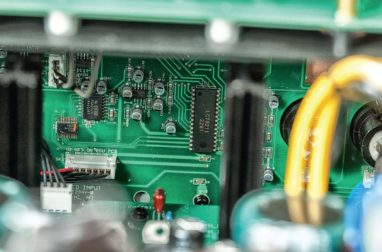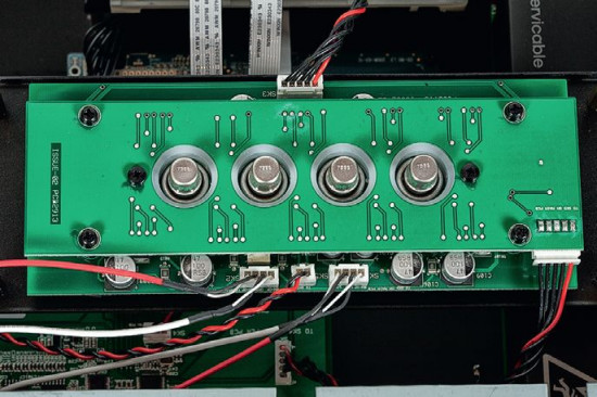 Pokrętła z przodu są jedynie sensorami przekazującymi komendy do właściwych obwodów regulacji. Aby skrócić ścieżkę sygnału, wszystkie operacje odbywają się na płytce przedwzmacniacza, tuż obok gniazd wejściowych.