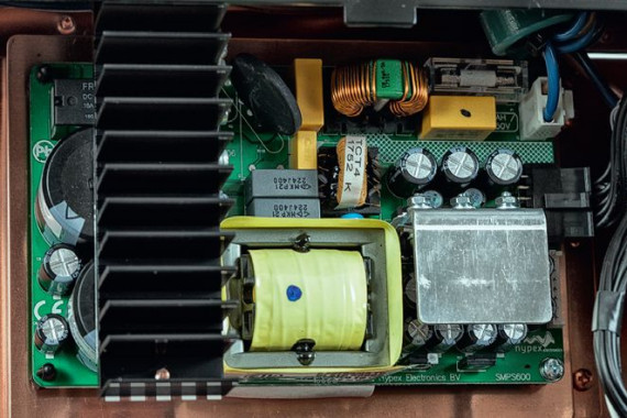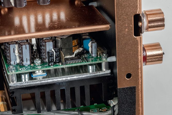 Moduły końcówek mocy dostarczył holenderski specjalista od klasy D – Hypex. Umieszczono je tuż przy gniazdach głośnikowych, niemal całkowicie eliminując konieczność prowadzenia przewodów.