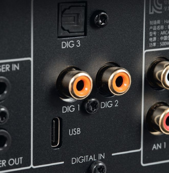 W tym konkretnym przypadku nie jest ona konieczna (bo sygnały audio w najwyższej nawet rozdzielczości pomieści i "stary" USB 2.0), ale pozostaje praktyczna wygoda podłączania przewodów (wtyki i gniazda USB-C są symetryczne, a USB-A – asymetryczne). Są jeszcze trzy klasyczne wejścia cyfrowe – dwa współosiowe i jedno optyczne.