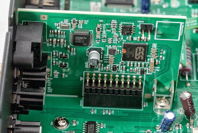 ESS ma już nowsze i jeszcze lepsze przetworniki, ale ES9018K2M nadal kusi swoimi możliwościami (i umiarkowaną ceną), jest jak najbardziej odpowiedni do odtwarzacza tej klasy. Impulsowy zasilacz umieszczono na niewielkiej płytce tuż za gniazdem 230 V.