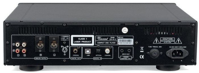 Zestaw wejść cyfrowych jest okazały, są wszystkie podstawowe standardy, optyczny, współosiowy oraz USB; jednak USB nie jest tym razem "prymusem", bo przyjmuje tylko PCM 16 bit/48 kHz, ale to nie pierwsza taka sytuacja u Vincenta, za to 24 bit/192 kHz przyjmie wejście współosiowe. CD-S1.2 ma również współosiowe wyjście.