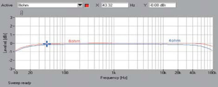 Ujawnia to, że amerykański wzmacniacz ma jednak ograniczenia mocowe i choć w impulsie radzi sobie fenomenalnie, to jednak przy ciągłym poborze prądu nieco się zatyka, nie zagramy z nim potężnie i swobodnie w dużym pomieszczeniu i z trudnymi kolumnami.