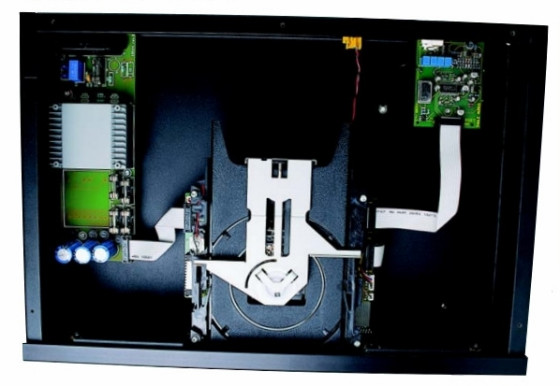 Mechanika wraz z serwo znajduje się na środku, oddzielając zasilacz, zbudowany wokół starannie zaizolowanego toroidalnego transformatora, od elementów dekodujących i wyjściowych odtwarzacza.