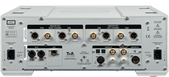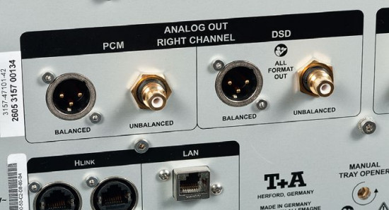 Zatem przy podłączeniu do dowolnego wzmacniacza innej firmy konieczne będzie przełączanie pomiędzy wejściami (w zależności od odtwarzanego formatu). Nie jest to niedogodność nie do zaakceptowania, ale w ramach firmowego systemu T+A i ona zostaje wyeliminowana, specjalny układ sterowania automatycznie przełącza wejścia we wzmacniaczu.