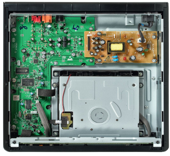 Chociaż w sporej obudowie zmieściłby się klasyczny mechanizm z tacką, to szczelinowiec wygląda nowocześniej.
