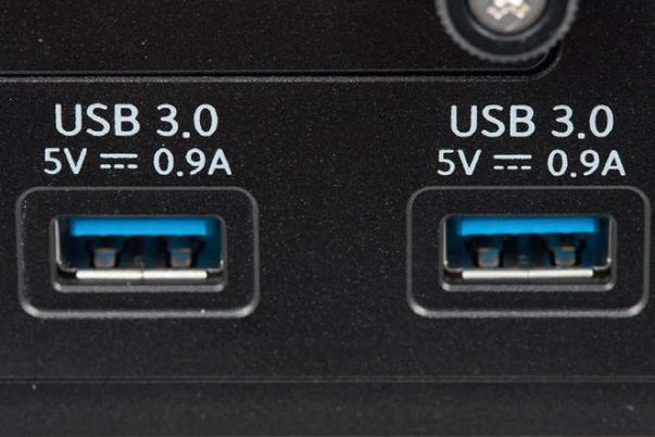 To jedyne USB w standardzie 2.0, pozostałe dwa to już nowszy standard 3.0 (oferujący wyższą przepustowość, co ma znaczenie podczas przesyłania dużej ilości danych), podłączamy do nich zewnętrzne nośniki, np. dyski twarde.