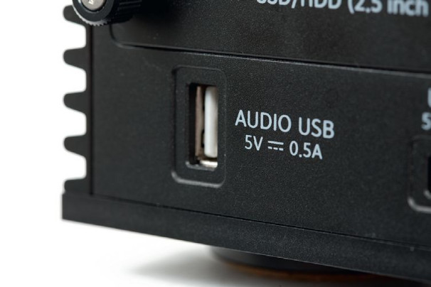 W celu lepszej orientacji złącze USB, które jest tutaj jedynym wyjściem sygnałów audio (w ten sposób podłączamy N150 do wzmacniacza lub przetwornika DAC), ustawiono pionowo.