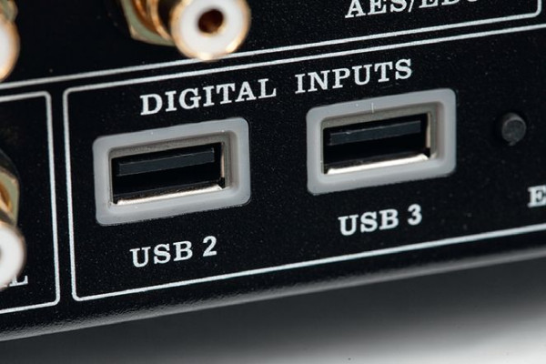 Niezależnie od sieciowej nowoczesności, DM-700 ma również bardziej tradycyjne wejścia cyfrowe: dwa elektryczne współosiowe, jedno optyczne i jedno symetryczne AES/EBU, a obok dwa wyjścia (współosiowe i optyczne).