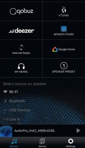 Jednak pewne charakterystyczne detale (takie jak układ grafik, sposób wyboru poszczególnych funkcji) nasuwają podejrzenie, że to kolejna wersja systemu LinkPlay (którym posługuje się także NuPrime). Zresztą obie firmy już wcześniej współpracowały przy głośnikach bezprzewodowych Audio Pro.