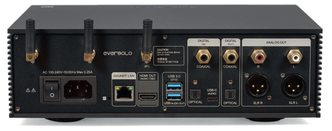 Odpowiednie gniazdo i anteny (w tym także dla Bluetooth) znajdują się na tylnej ściance wraz z bogatym zestawem wejść cyfrowych (S/PDIF, Toslink, USB-DAC). Są też dwa wspomniane złącza USB. Wyjścia analogowe to para RCA i XLR – układ wewnętrzny jest zbalansowany. Wśród wyjść cyfrowych, obok optycznego i współosiowego, jest HDMI.