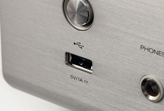 Podstawowe funkcje odtwarzania skupia okrągły moduł, z przedniego panelu możemy także przełączać źródła. Obok 6,3-mm gniazda słuchawkowego znajduje się pokrętło wzmocnienia. Denon przygotował ponadto trzy tryby pracy wzmacniacza, które pozwalają dostosować wzmocnienie do czułości słuchawek. Złącze USB służy nośnikom pamięci.