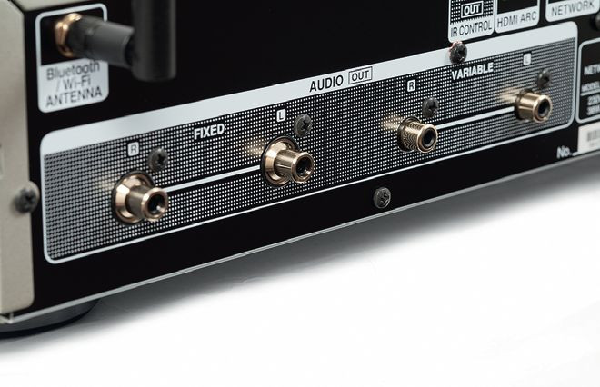 Do dyspozycji są więc dwa optyczne, jedno współosiowe, jedno USB-DAC oraz HDMI z kanałem zwrotnym ARC. Są też cyfrowe wyjścia (optyczne i współosiowe). Moduł sieciowy zawiera złącze LAN oraz dwie anteny – niezależnie Wi-Fi oraz Bluetooth.