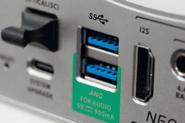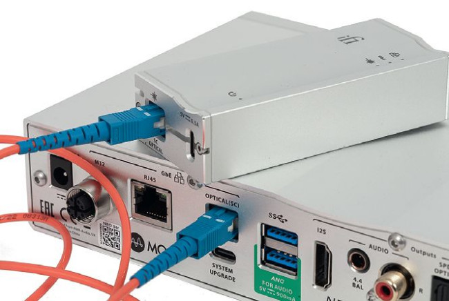 Największą atrakcją jest przygotowany dla Neo Stream dodatkowy interfejs optyczny, który tłumaczy sygnały elektryczne (LAN) na transmisję światłowodową. Z zasady jest ona wolna od typowych problemów (zakłóceń). W zestawie z odtwarzaczem znajdziemy dodatkową małą kostkę, czyli interfejs, zadaniem którego jest przeprowadzenie takiej konwersji.