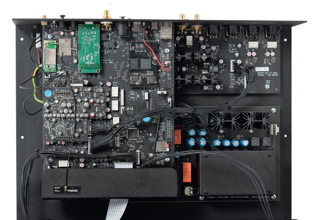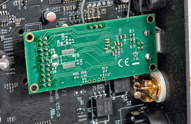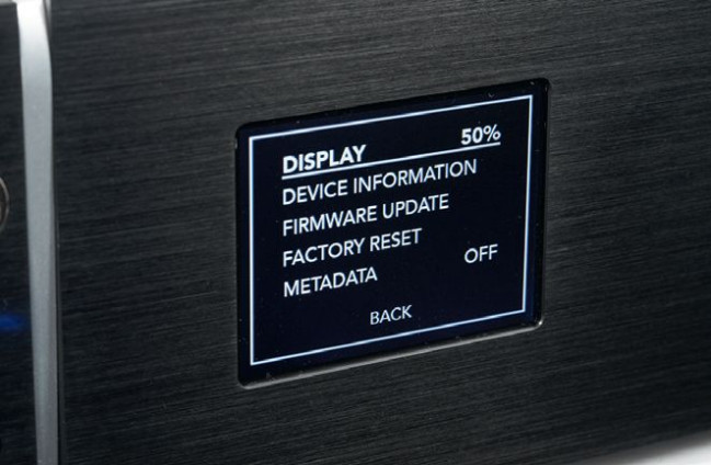 3,5-calowy kolorowy wyświetlacz nie jest dotykowy, ale bardzo wygodną obsługę zapewnia wielofunkcyjne pokrętło, a niezależnie – aplikacje mobilne (od odtwarzacza lub serwisów strumieniowych). Wyświetlacz prezentuje (oprócz menu) także standardowe informacje, parametry sygnału, wejście, konfi gurację filtrów.