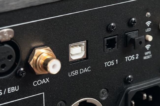 Wejść cyfrowych jest aż sześć i to w wielu standardach – dwa optyczne, jedno współosiowe, AES/EBU, do tego dwa USB – jedno dla nośników pamięci i jedno USB-DAC.
