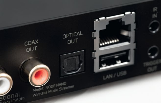 Podstawowe wyjście sygnału to oczywiście analogowa para RCA, która może pracować w dwóch trybach – z regulacją głośności lub bez niej. Są też wyjścia cyfrowe, jedno współosiowe i jedno optyczne. Duetem znanym z wielu urządzeń Bluesound jest tandem wejście sieciowe i USB (do nośników pamięci i zapisanej na nich muzyki).