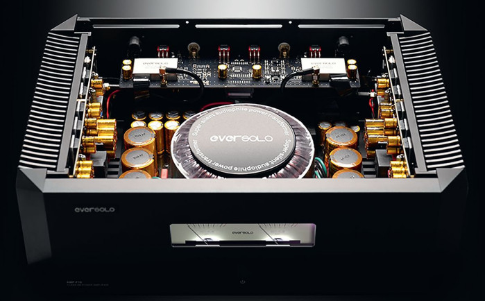Stopnie wyjściowe składają się z dziesięciu (na kanał) tranzystorów typu MOSFET, które EverSolo łączy w równoległe gałęzie. Elementy o oznaczeniach IRFP9240 nie należą do najbardziej popularnych, nie są tanie ani łatwo dostępne, obecnie łatwiej spotkać je na rynku DIY niż we wzmacniaczach znanych producentów, jednak niegdyś stosował je Nelson Pass, a na takich autorytetach można się wzorować.