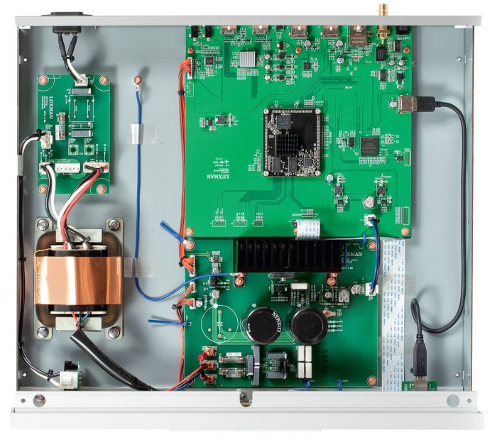 Wszystkie układy są zasilane, jak to nazywa sam Luxman, z "tradycyjnego" liniowego zasilacza z rozbudowanymi stabilizatorami napięcia. W sumie DA-07X ma trzy rdzeniowe transformatory.
