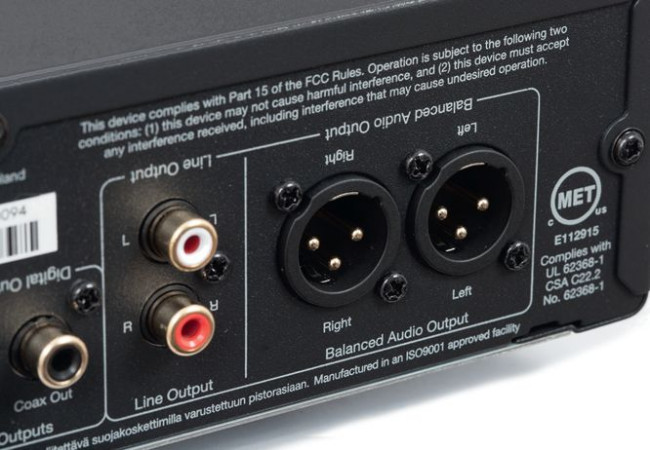 Wyjścia analogowe RCA plus XLR mogą dostarczać sygnał o ustalonym lub regulowanym poziomie.