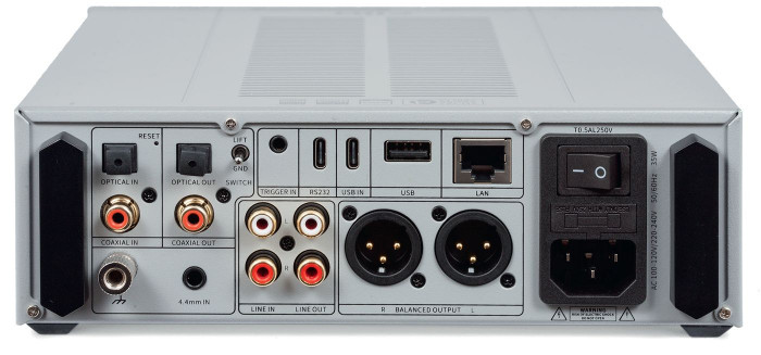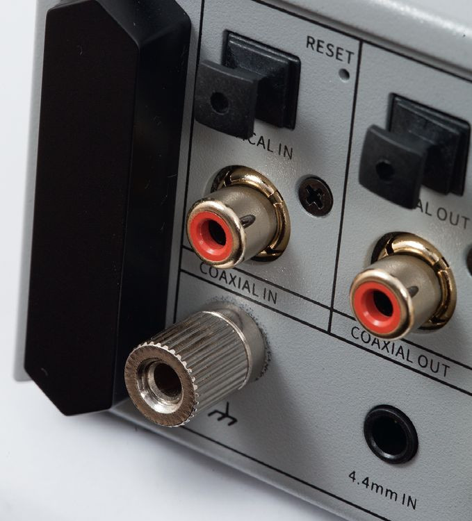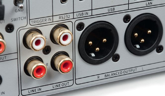 FiiO K17 ma wyjścia w standardach RCA oraz XLR (kończące w pełni zbalansowany tor sygnału). Do tego jest wejście liniowe RCA, a nawet zbalansowane, w dość niekonwencjonalnej formie gniazda 4,4 mm (na kolejne XLR-y nie starczyło już miejsca). W części cyfrowej mamy dwa kolejne złącza USB, jedno USB-C i jedno USB-A. Podłączymy tu odpowiednio komputer (tryb USB- -DAC) oraz nośniki pamięci z muzyką.