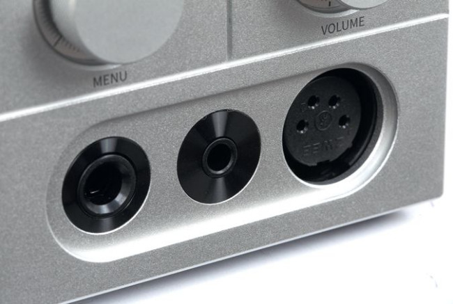 Na froncie znajduje się także złącze USB-C (odtworzymy muzykę z nośników pamięci) oraz – co najważniejsze – aż trzy wyjścia słuchawkowe: symetryczne XLR, Pentaconn oraz niezbalansowane 6,3 mm.