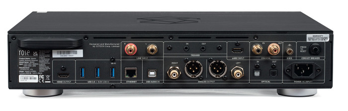 Wyposażenie w różnorodne wejścia i wyjścia jest kapitalne. Analogowe wyjścia – oczywiście zarówno w standardzie RCA, jak i XLR. Rose RS451 ma również parkę wejść (liniowych), dzięki którym może pracować jako przedwzmacniacz dla źródeł analogowych. Wszystko wskazuje jednak na to, że sygnał jest konwertowany na postać cyfrową i dopiero w taki sposób regulowany.