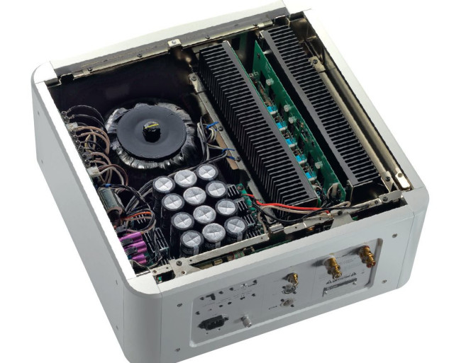 Podstawą tej drugiej jest bardzo duży transformator toroidalny (który sam waży aż 19 kg i ma moc 3 kW) oraz umieszczona tuż za nim (w tylnej części) bateria kondensatorów filtrujących. Układy audio zbudowano na dwóch radiatorach biegnących przez całą głębokość obudowy. Konsekwencją takiej architektury jest aranżacja tylnego panelu (gniazdo zasilające z lewej strony, wyjścia głośnikowe z prawej).
